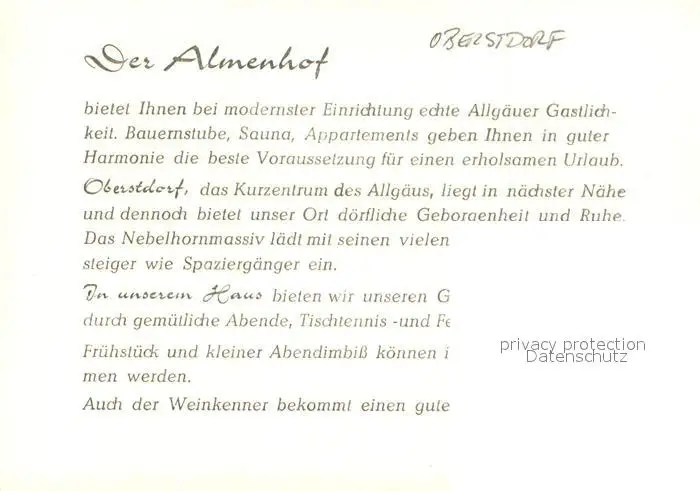 Rubi_Oberstdorf Almenhof Ponys Allgaeuer Alpen Rubi_Oberstdorf postalisch nicht gelaufen nach 1965 Werbekarte (keine Postkarte) Erhaltung siehe scans [FriedD77] Werbekarte (keine Postkarte) Frierer