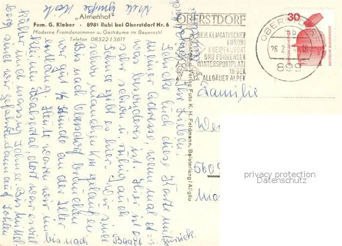 Rubi_Oberstdorf Hotel Restaurant Almenhof Rubi_Oberstdorf postalisch gelaufen 1974 Erhaltung siehe scans [FriedD77] Frierer