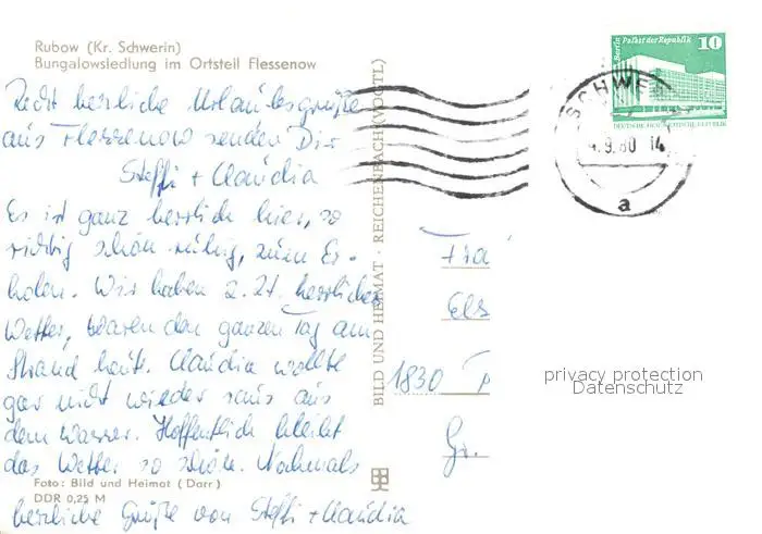 Rubow Bungalowsiedlung im OT Flessenow Rubow postalisch gelaufen 1980 Erhaltung siehe scans [WerneD78] WernPID7