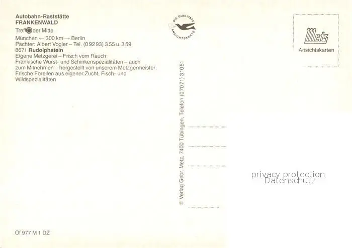Rudolphstein Autobahn Raststaette Frankenwald Restaurant Kueche Rudolphstein postalisch nicht gelaufen nach 1965 Erhaltung siehe scans [FriedD77] Frierer