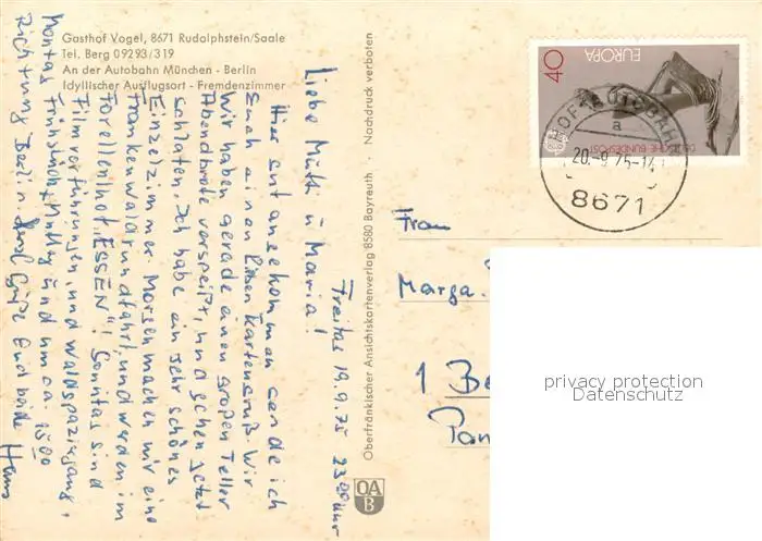 Rudolphstein Gasthaus Vogel Gaststube Panorama Rudolphstein postalisch gelaufen 1975 Erhaltung siehe scans [WerneD78] WernPID7