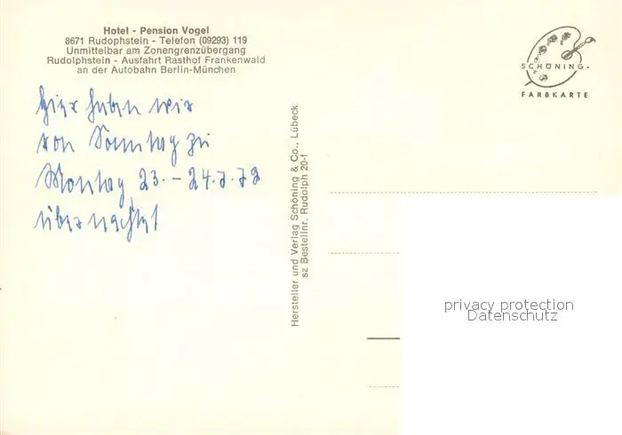Rudolphstein Hotel Pension Vogel Gastraum Autobahn Rasthaus Bruecke Rudolphstein postalisch nicht gelaufen 1972 Erhaltung siehe scans [FriedD77] Frierer
