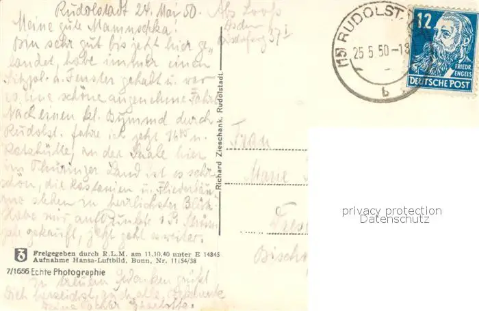 Rudolstadt Fliegeraufnahme mit Schloss Rudolstadt postalisch gelaufen 1950 Erhaltung siehe scans [WerneD78] WernPID7
