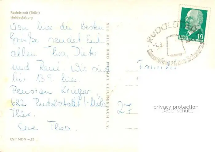 Rudolstadt Heidecksburg Rudolstadt postalisch gelaufen 1965 Erhaltung siehe scans [KathaD81] Kathoren