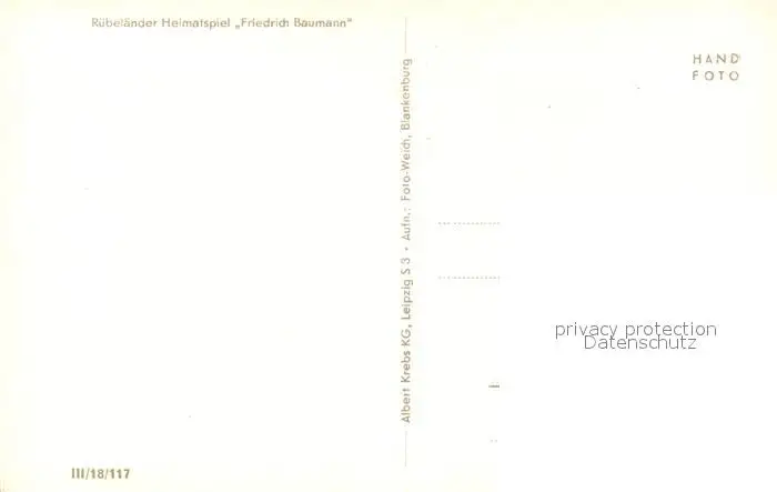 Ruebeland_Harz Baumannshoehle Ruebelaender Heimatspiel Friedrich Baumann Ruebeland_Harz postalisch nicht gelaufen 1955 Erhaltung siehe scans [FriedD77] Frierer