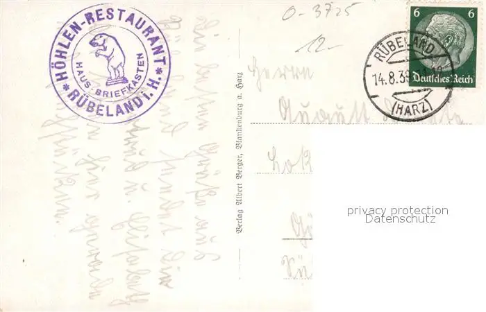 Ruebeland_Harz Hermannshoehle Ruebeland_Harz postalisch gelaufen 1939 Erhaltung siehe scans [WerneD78] WernPID7
