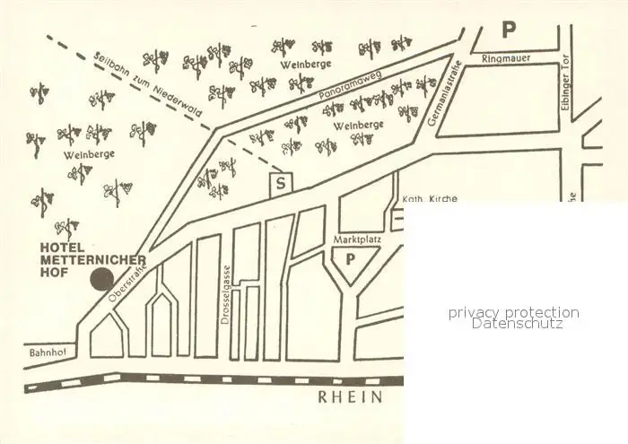 Ruedesheim_Rhein Hotel Restaurant Metternicher Hof Ruedesheim Rhein postalisch nicht gelaufen nach 1965 Werbekarte (keine Postkarte) Erhaltung siehe scans [FriedD77] Werbekarte (keine Postkarte) Frierer