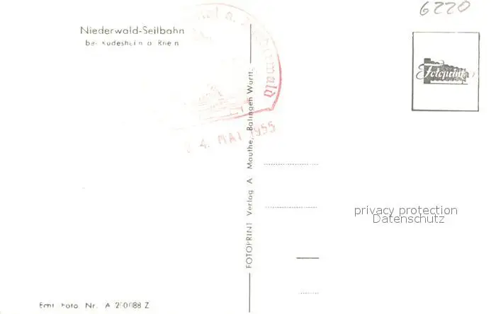 Ruedesheim_Rhein Niederwald Seilbahn Ruedesheim Rhein postalisch nicht gelaufen 1921-1965 Erhaltung siehe scans [WerneD78] WernPID7