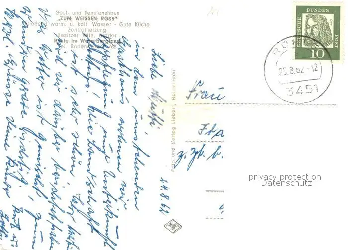 Ruehle_Oberweser Kategorie Alte Ansichtskarten Postkarten bx93746 Ruehle_Oberweser Gast und Pensionshaus Zum Weissen Ross Ruehle_Oberweser postalisch gelaufen 1962 Erhaltung siehe scans [WerneD78]