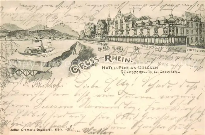 Ruengsdorf Hotel Pension Dreesen Rheinpartie Ruengsdorf postalisch gelaufen bis 1920 Erhaltung siehe scans [WerneD78] WernPID7