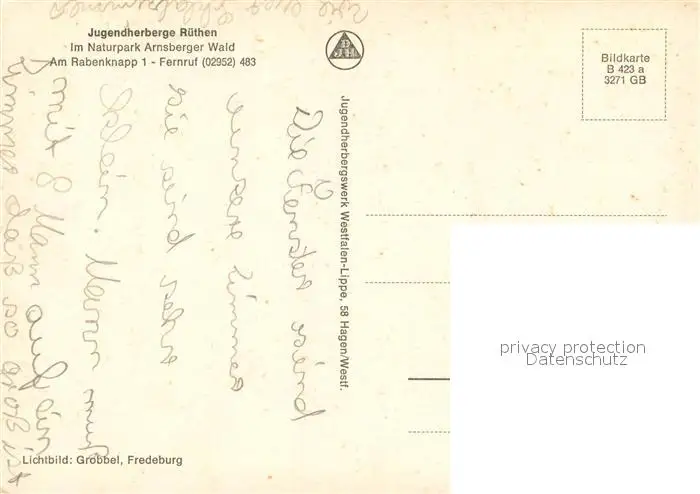 Ruethen_Moehne Jugendherberge im Naturpark Arnsberger Wald Ruethen Moehne postalisch nicht gelaufen nach 1965 Erhaltung siehe scans [FriedD77] Frierer