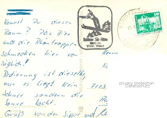 Ruhla Ruhlaer Skihuette Bar Ruhla postalisch gelaufen nach 1965 Erhaltung siehe scans [FriedD77] Frierer