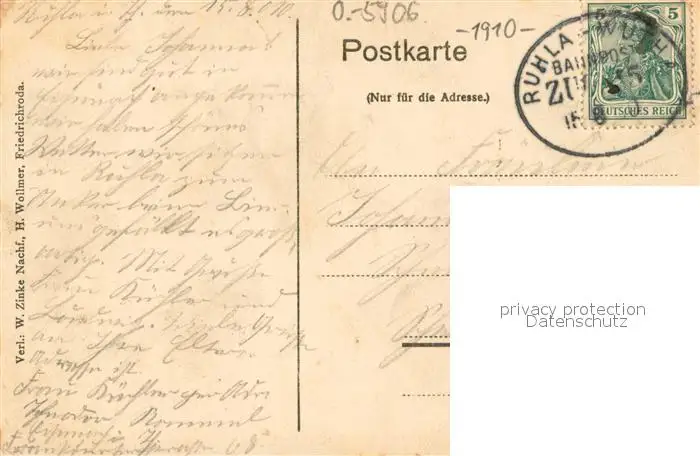Ruhla Unterer Ortsteil Ruhla postalisch gelaufen 1910 Bahnpost Erhaltung siehe scans [FriedD77] Bahnpost Frierer