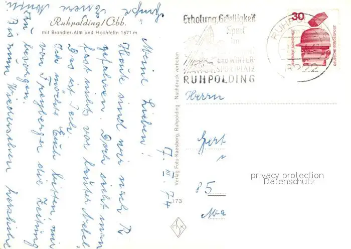 Ruhpolding Brandler Alm Hochfelln Ruhpolding postalisch gelaufen 1974 Erhaltung siehe scans [KathaD81] Kathoren