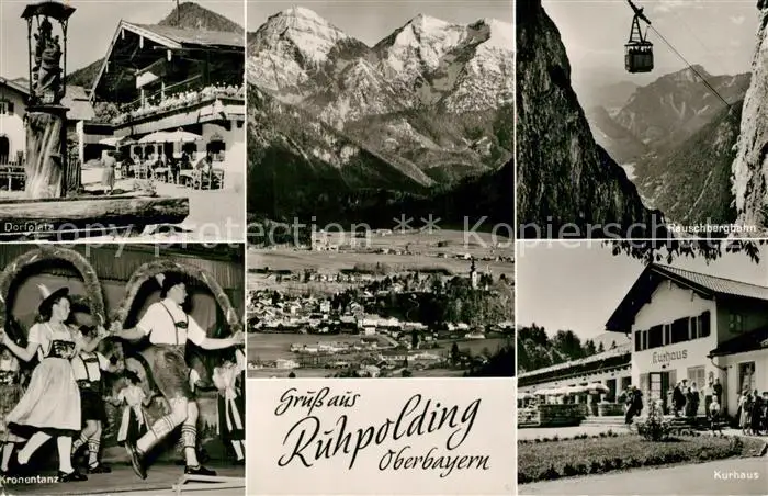 AK / Ansichtskarte Ruhpolding Dorfplatz Reuschbergbahn Kronentanz Kurhaus Ruhpolding