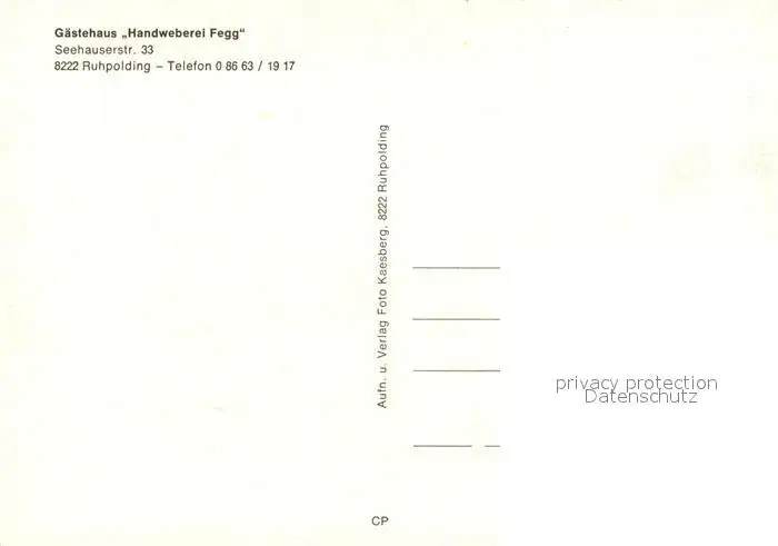 Ruhpolding Kategorie Alte Ansichtskarten Postkarten bx52693 Ruhpolding Gaestehaus Handweberei Fegg Ruhpolding postalisch nicht gelaufen nach 1965 Erhaltung siehe scans [FriedD77]