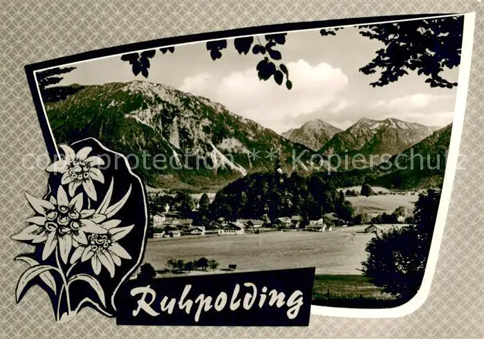 Ruhpolding Gesamtansicht mit Alpenpanorama Grundvorlage 52 Ruhpolding postalisch nicht gelaufen 1921-1965 Verlagsrohabzug (keine Postkartenrueckseite) Erhaltung siehe scans [FriedD77] Verlagsrohabzug (keine Postkartenrueckseite) Frierer