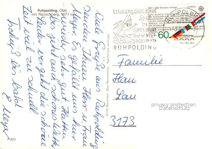 Ruhpolding Gesamtansicht mit Rauschberg Chiemgauer Alpen Ruhpolding postalisch gelaufen 1983 Erhaltung siehe scans [FriedD77] Frierer
