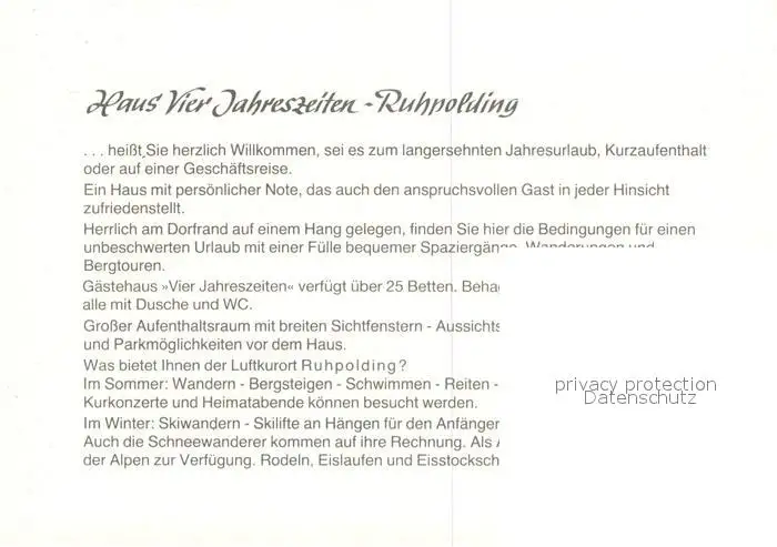 Ruhpolding Haus Vier Jahreszeiten Restaurant Terrasse Alpenblick Ruhpolding postalisch nicht gelaufen nach 1965 Werbekarte (keine Postkarte) Erhaltung siehe scans [FriedD77] Werbekarte (keine Postkarte) Frierer