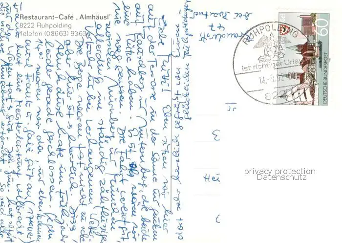 Ruhpolding Restaurant Café Almhaeusl Ruhpolding postalisch gelaufen 1992 Erhaltung siehe scans [LiesaD40] LiesID40