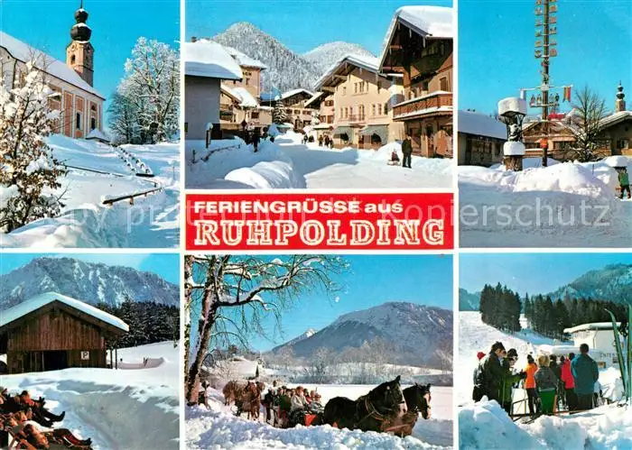 AK / Ansichtskarte Ruhpolding Winterimpressionen Luftkurort Bayerische Alpen Pferdeschlitten Skilift Ruhpolding
