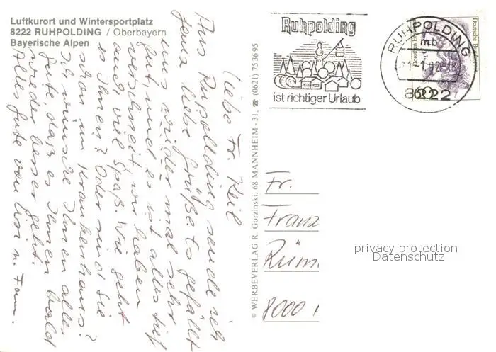 Ruhpolding Winterimpressionen Luftkurort Bayerische Alpen Pferdeschlitten Skilift Ruhpolding postalisch gelaufen 1992 Erhaltung siehe scans [FriedD77] Frierer