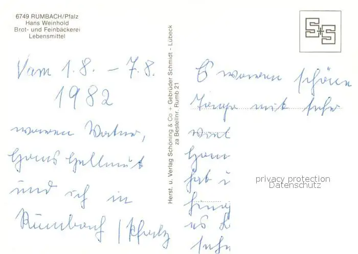 Rumbach_Rheinland-Pfalz Baeckerei Hans Weinhold Rumbach_Rheinland-Pfalz postalisch nicht gelaufen 1982 Erhaltung siehe scans [LiesaD40] LiesID40