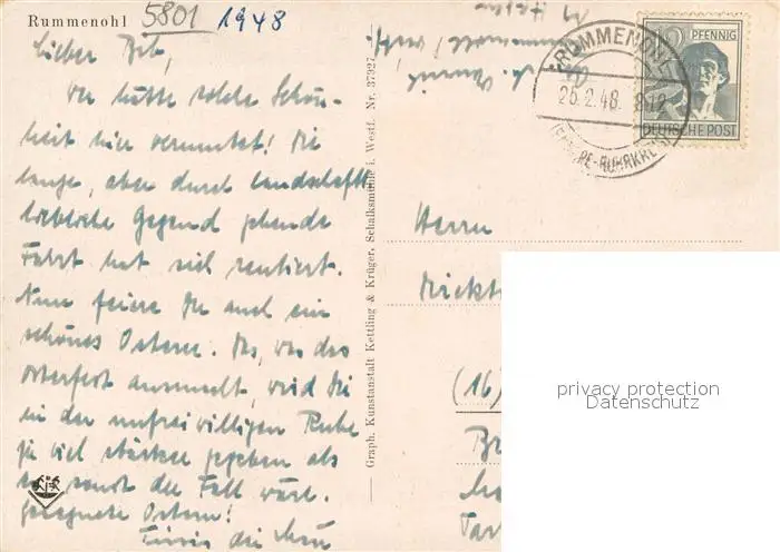 Rummenohl Gesamtansicht Rummenohl postalisch gelaufen 1948 Erhaltung siehe scans [LiesaD40] LiesID40