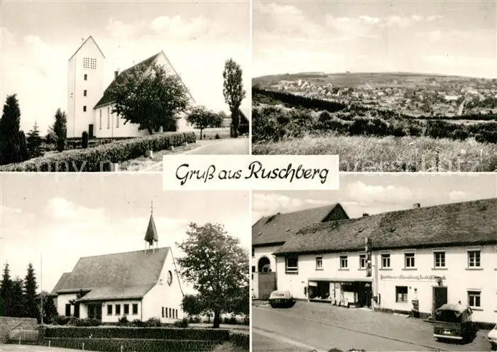 Ruschberg Kirche Panorama Gasthaus Kirsch Ruschberg postalisch gelaufen 1971 Erhaltung siehe scans [WerneD78] WernPID7
