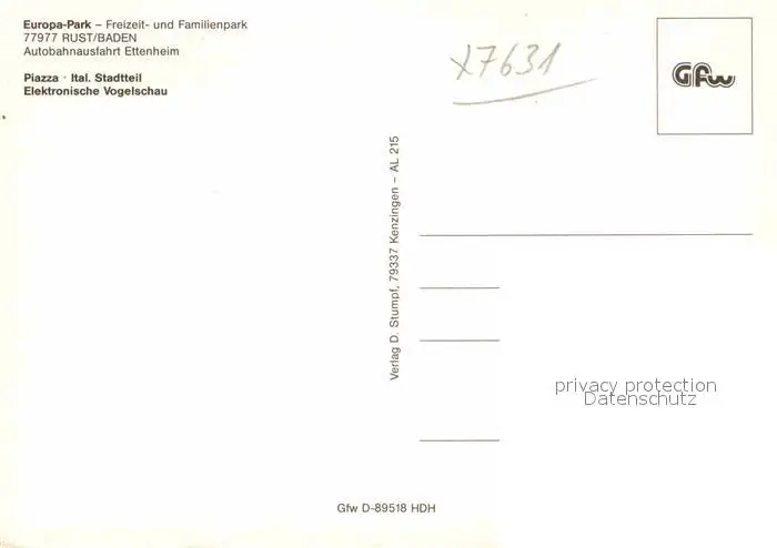 Rust Ortenaukreis Europa Park Rust postalisch nicht gelaufen nach 1965 Erhaltung siehe scans [AndreD76] AndrID76