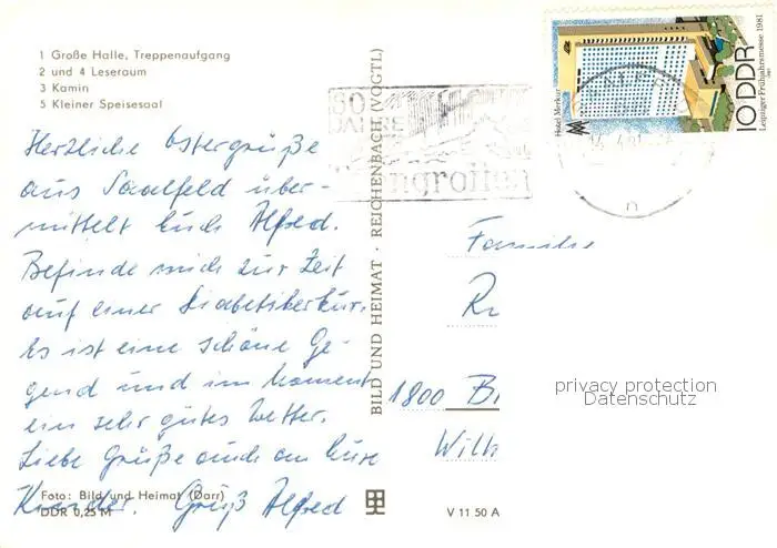 Saalfeld_Saale Grosse Halle Treppe Leseraum Kamin Kleiner Speisesaal Saalfeld_Saale postalisch gelaufen nach 1965 Erhaltung siehe scans [WerneD78] WernPID7