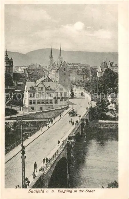 Saalfeld_Saale Kategorie Alte Ansichtskarten Postkarten bx78036 Saalfeld_Saale Panorama Kirche Saalfeld_Saale postalisch nicht gelaufen Erhaltung siehe scans [KathaD81]