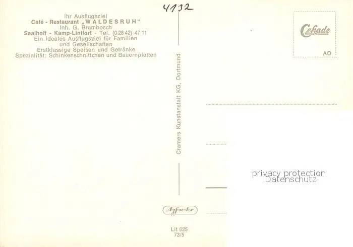 Saalhoff Cafe Restaurant Waldesruh Saalhoff postalisch nicht gelaufen 1973 Erhaltung siehe scans [FriedD77] Frierer