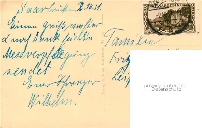 Saarbruecken 70e Denkmal im Ehrental Saarbruecken postalisch gelaufen 1931 Erhaltung siehe scans [FriedD77] Frierer