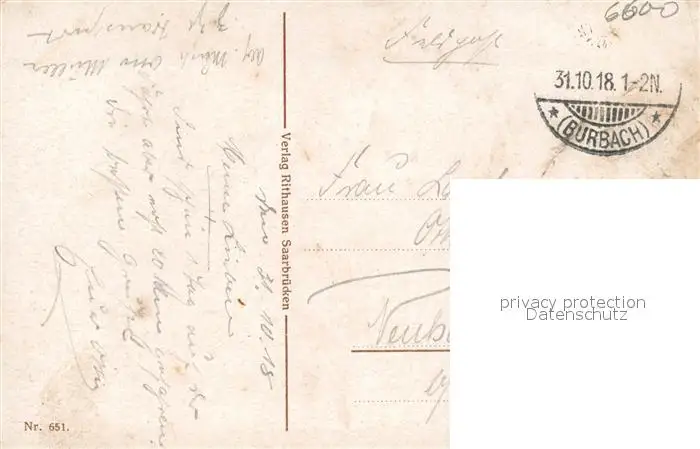 Saarbruecken Bahnhofstrasse Feldpost Saarbruecken postalisch gelaufen 1918 Erhaltung siehe scans [FriedD77] Frierer