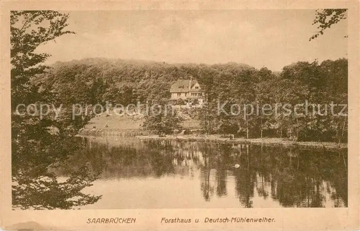 AK / Ansichtskarte Saarbruecken Forsthaus und Deutsch Muehlenweiher Saarbruecken
