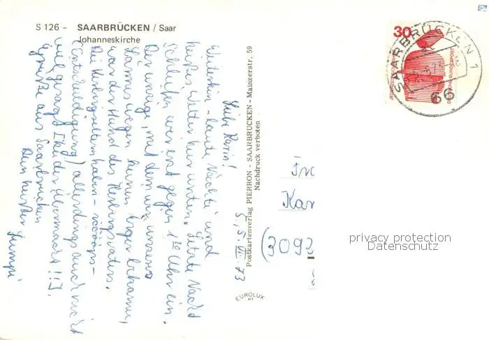 Saarbruecken Johanneskirche Saarbruecken postalisch gelaufen 1973 Erhaltung siehe scans [WerneD78] WernPID7