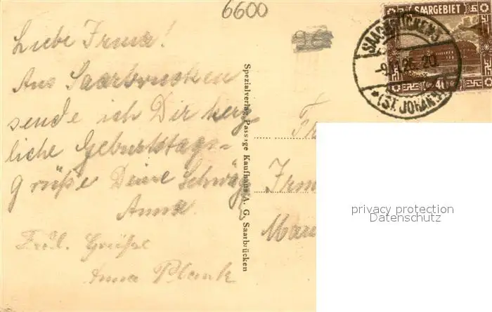 Saarbruecken Johanniskirche Saarbruecken postalisch gelaufen 1926 Erhaltung siehe scans [FriedD77] Frierer