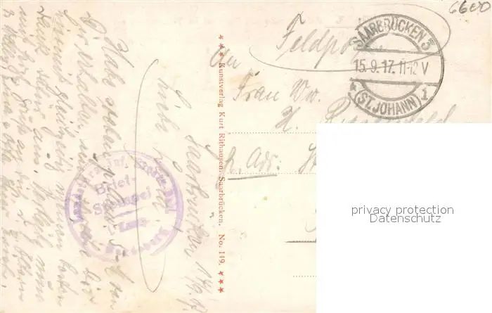 Saarbruecken Reichsstrasse mit Bahnhof im Hintergrund Automobil Feldpost Saarbruecken postalisch gelaufen 1917 Erhaltung siehe scans [FriedD77] Frierer