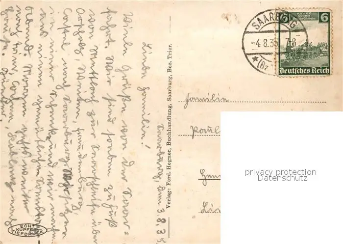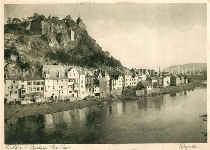 Saarburg_Saar Panorama Uferpartie Saarburg Saar postalisch gelaufen 1935 Erhaltung siehe scans [KathaD81] Kathoren