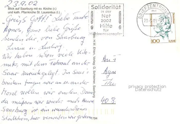 Saarburg_Saar Pfarrkirche Sankt Laurentius Evangelische Kirche Saarburg Saar postalisch gelaufen 2002 Erhaltung siehe scans [KathaD81] Kathoren