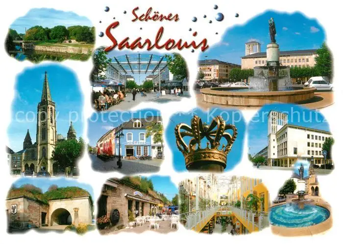 AK / Ansichtskarte Saarlouis Partie an der Saar Kirche Innenstadt Deutsches Tor Rathaus Deutsches Tor Koenigskrone Galerie Kleiner Markt Bastion Altstadt Brunnen Saarlouis