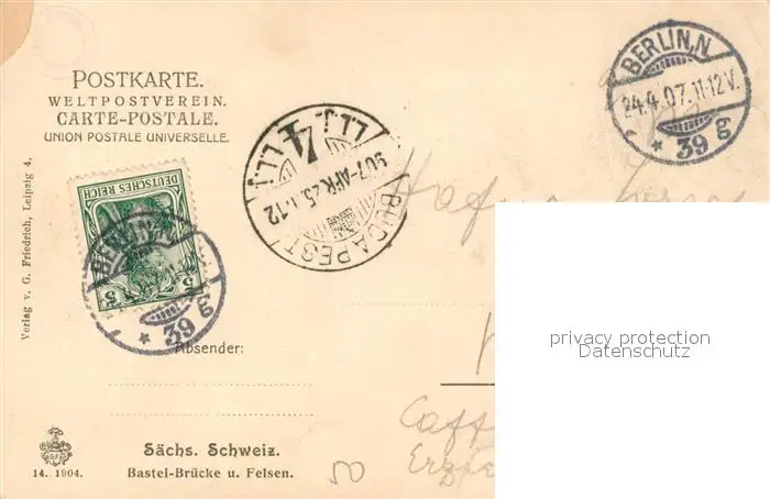 Saechsische_Schweiz Bastei Bruecke und Felsen Saechsische Schweiz postalisch gelaufen 1907 Erhaltung siehe scans [WerneD78] WernPID7
