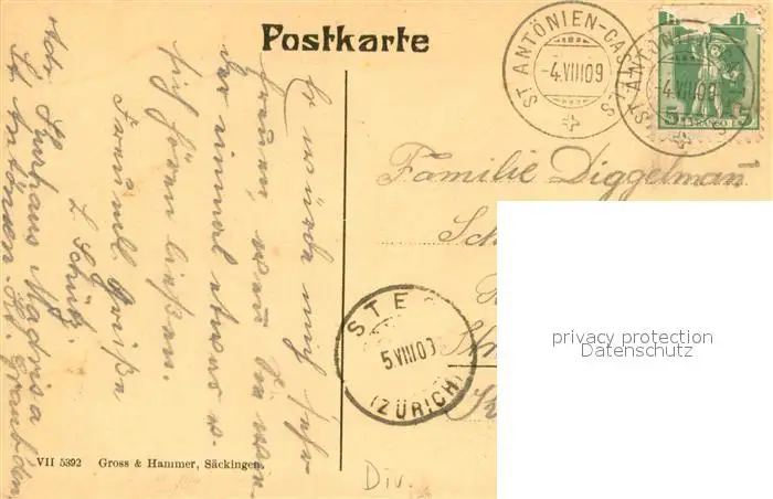 Saeckingen_Bad Rheinpanorama Trompeter von Saeckingen Saeckingen_Bad postalisch gelaufen 1909 Erhaltung siehe scans [WerneD78] WernPID7