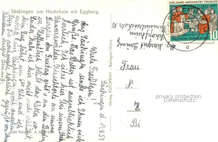 Saeckingen_Bad Teilansicht m. Hochrhein u. Eggberg Saeckingen_Bad postalisch gelaufen 1957 Erhaltung siehe scans [LiesaD40] LiesID40