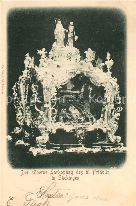 Saeckingen_Rhein Silberner Sarkophag des hl Friedolin Saeckingen Rhein postalisch gelaufen 1902 Erhaltung siehe scans [WerneD78] WernPID7