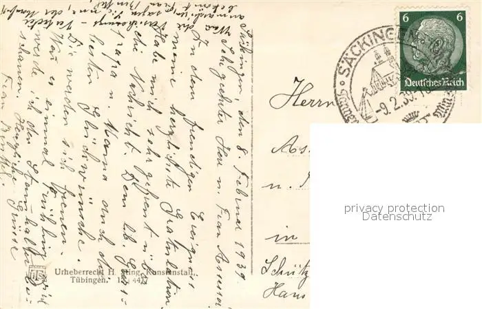 Saeckingen_Rhein Trompeterschloss Saeckingen Rhein postalisch gelaufen 1939 Erhaltung siehe scans [WerneD78] WernPID7