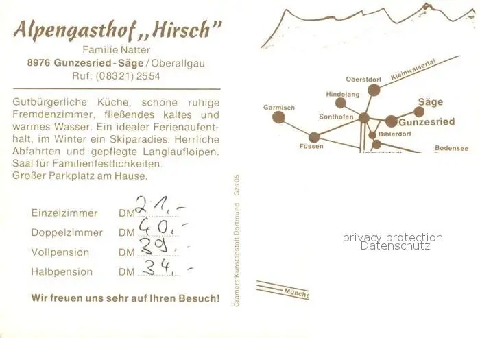 Saege_Gunzesried Alpengasthof Kirsch Gastraeume Panorama Saege Gunzesried postalisch nicht gelaufen 1921-1965 Werbekarte (keine Postkarte) Erhaltung siehe scans [WerneD78] Werbekarte (keine Postkarte) WernPID7