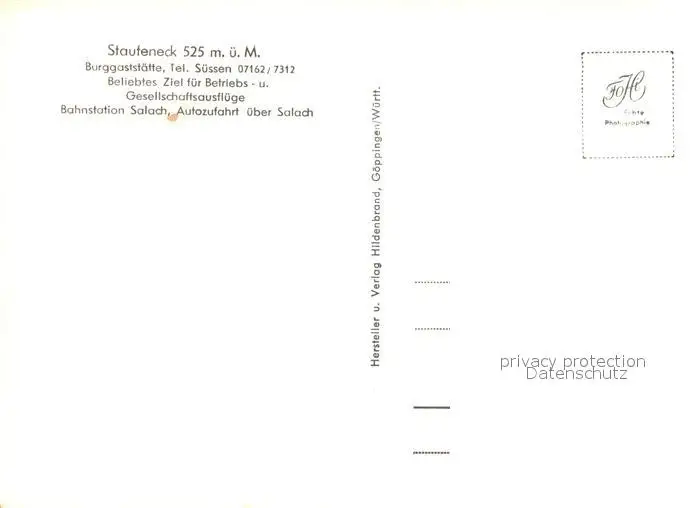Salach Burgruine Staufeneck Salach postalisch nicht gelaufen 1921-1965 Erhaltung siehe scans [PaolaD17] PaolPID1