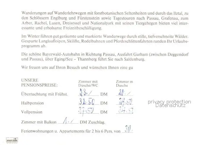 Saldenburg Saldenburger Hof Panorama Saldenburg postalisch nicht gelaufen nach 1965 Werbekarte (keine Postkarte) Erhaltung siehe scans [KathaD81] Werbekarte (keine Postkarte) Kathoren